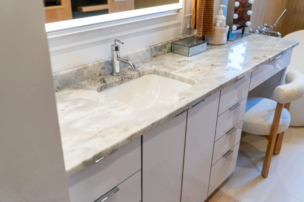 Every piece in this project was custom fabricated at the Costa’s Stone facility and professionally installed in Marblehead, MA. Our team managed the entire process from start to finish to ensure a perfect fit and premium finish for this custom stone project.
