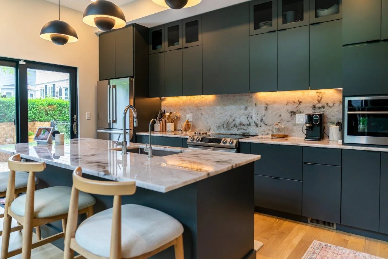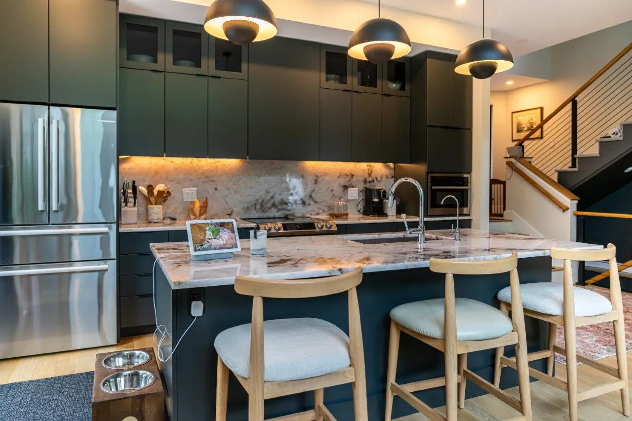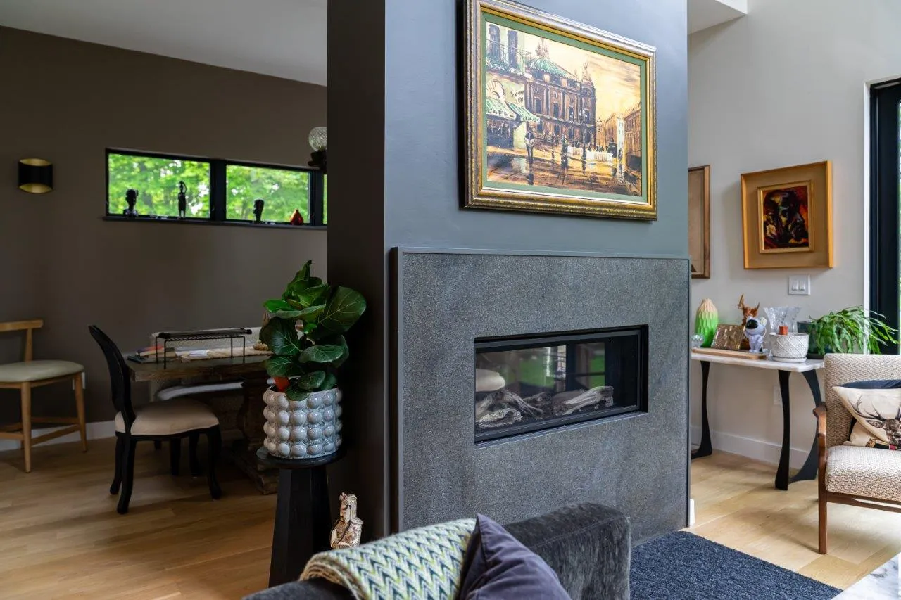 Kitchen & Stone Fireplace in Marblehead