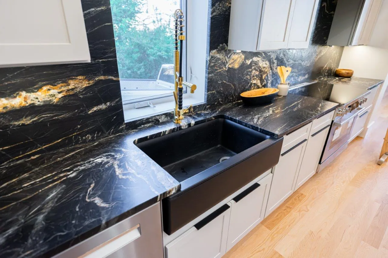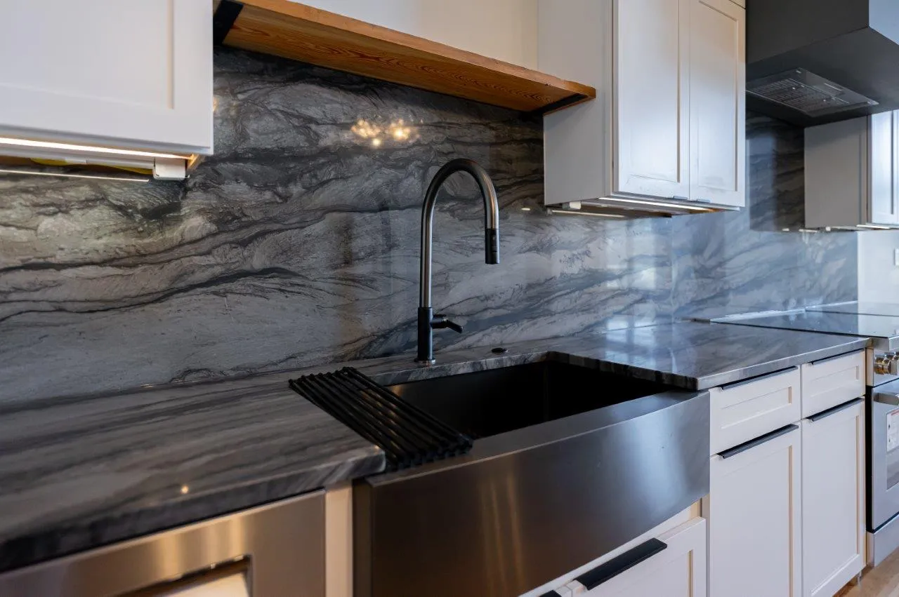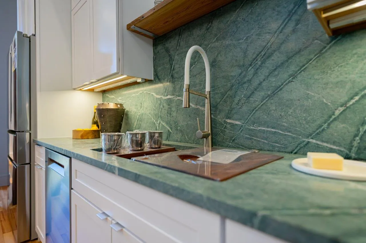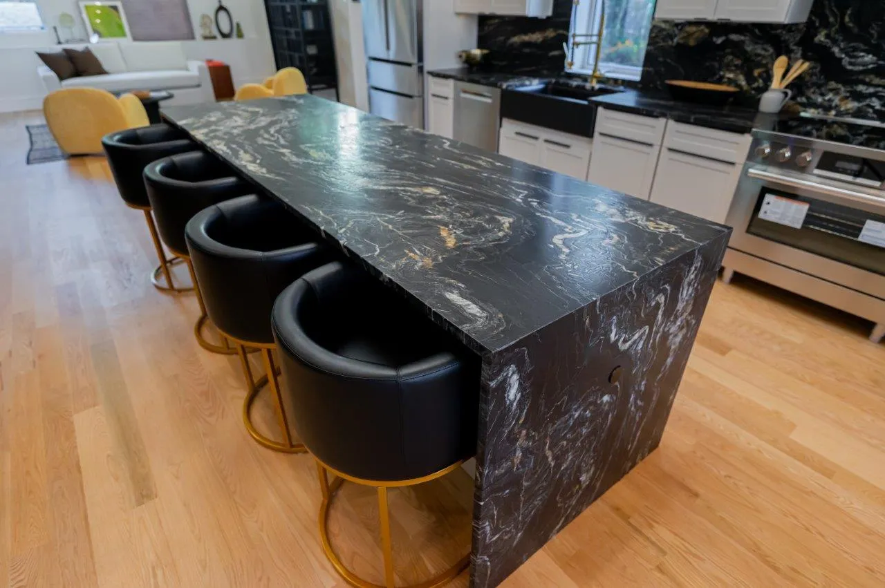 Every piece in this project was custom fabricated at the Costa’s Stone facility and professionally installed in Winthrop, MA. Our team managed the entire process from start to finish to ensure a perfect fit and premium finish for this custom stone project.