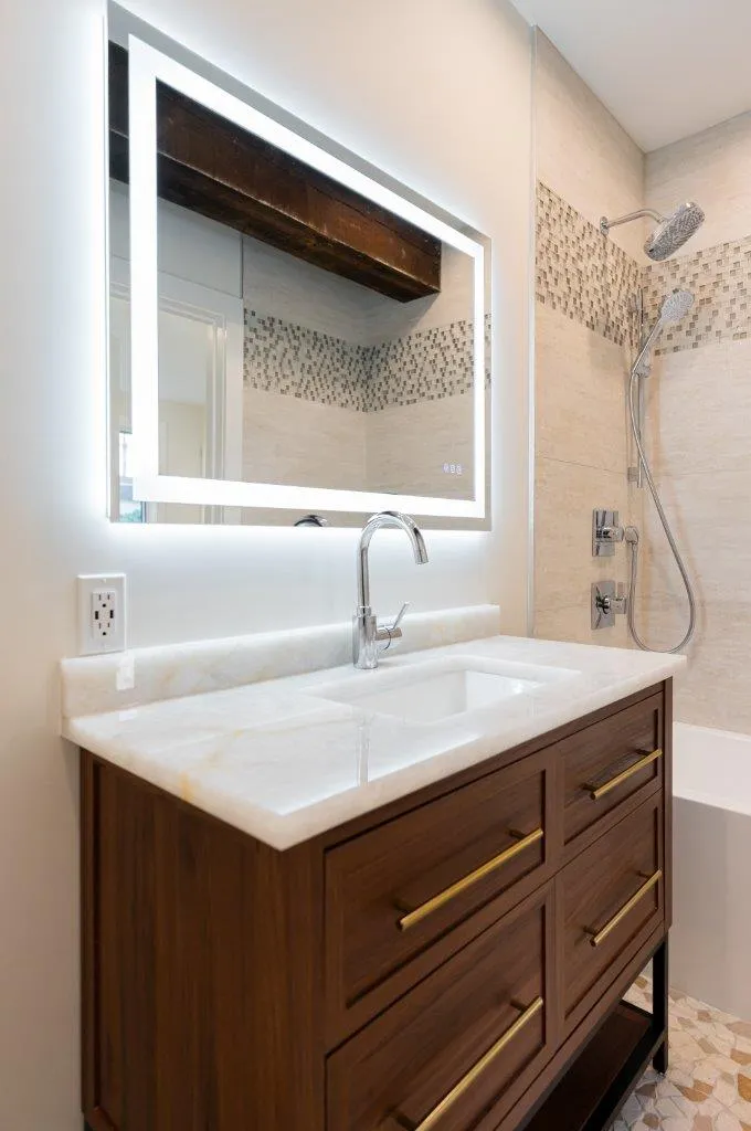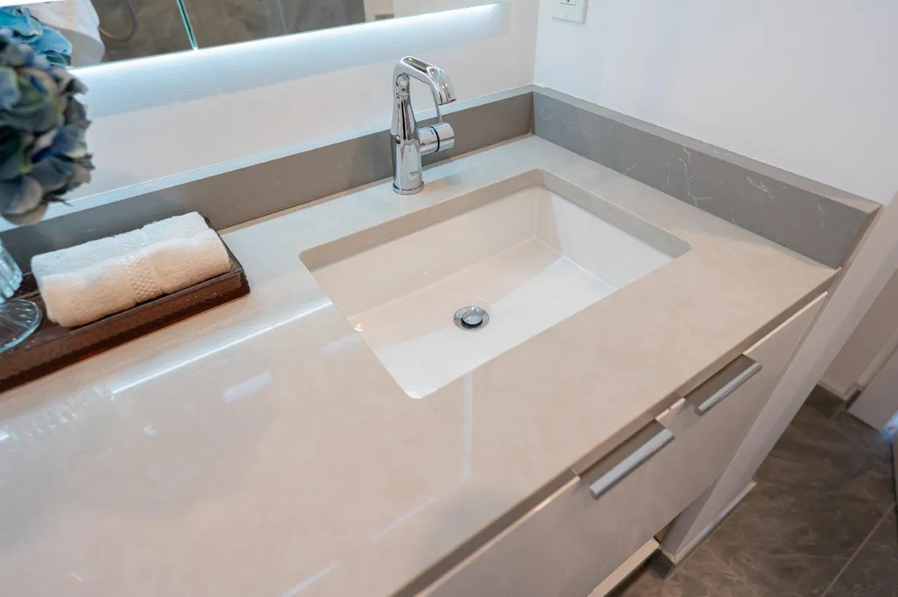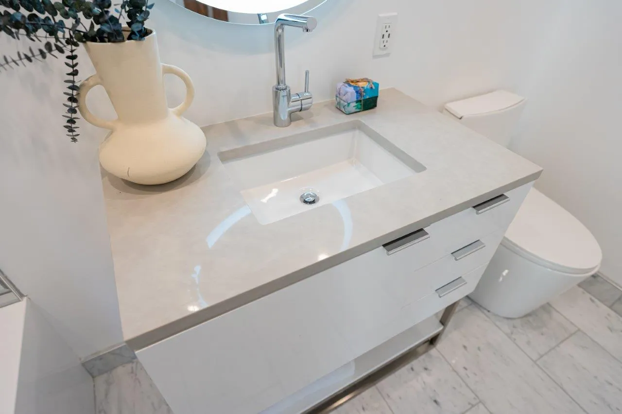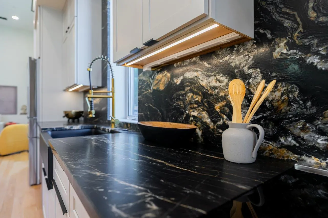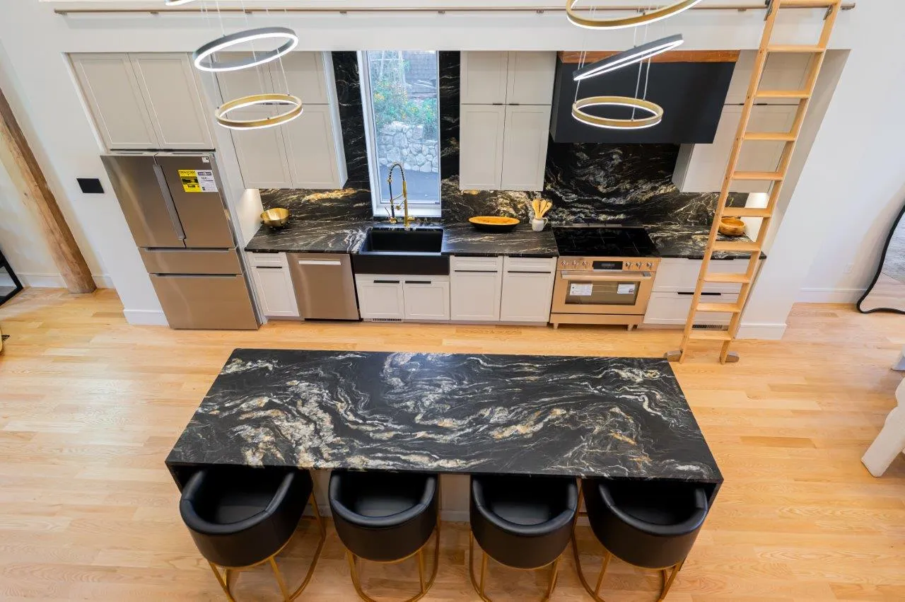Every piece in this project was custom fabricated at the Costa’s Stone facility and professionally installed in Winthrop, MA. Our team managed the entire process from start to finish to ensure a perfect fit and premium finish for this custom stone project.